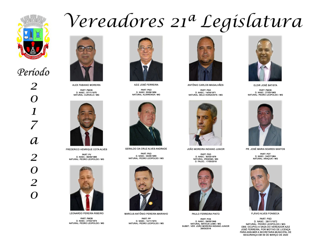 Vereadores da 21ª Legislatura - 2017 a 2020